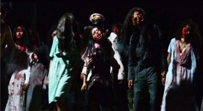Sinopsis: Un campamento de refugiados acoge a los sobrevivientes de un “extraño” apocalipsis zombi y como si se tratara de una película de terror, un grupo de personas intenta escapar de la aterradora situación despertando a una dicotomía, hay que temerle más a los vivos en la guerra que a los muertos de la guerra. Es un juego de rol escénico en donde los asistentes son considerados jugadores que buscan salvarse de un ataque zombi en un campamento de refugiados.